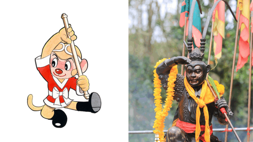 - 中国の孫悟空:尾は隠され、人間に近く、正義感ある英雄像。