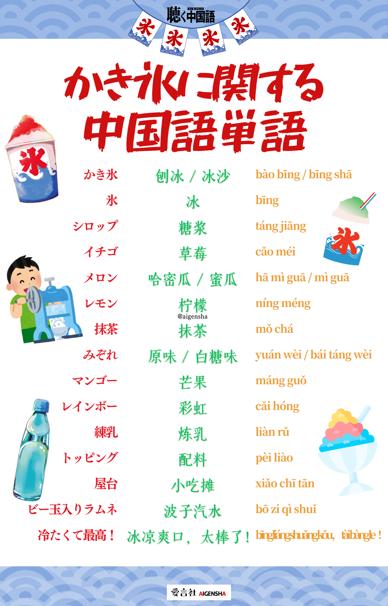 というわけで、暑い日に食べたい「かき氷」にまつわる中国語単語を特集しました。