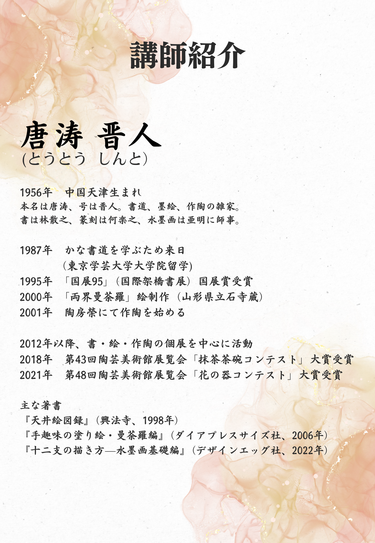 「唐涛晋人先生・水墨画ワークショップ」の開催が決まりました!