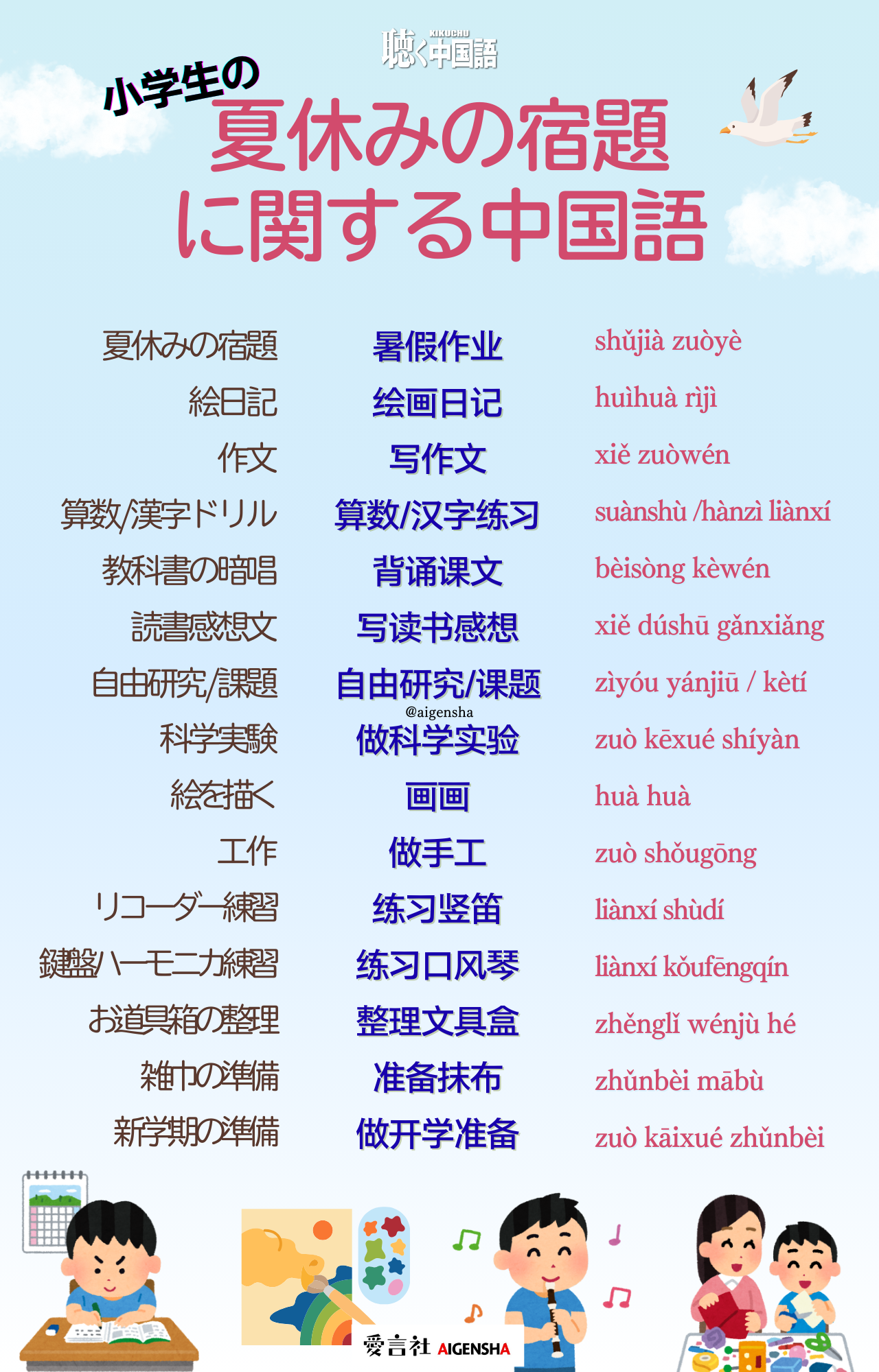 夏休みの宿題 暑假作业 shǔjià zuòyè