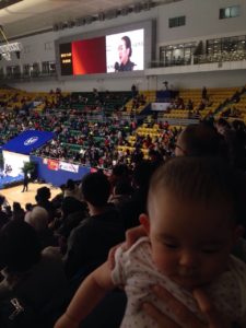 ただし、生後半年の赤子を抱っこしての観戦はなかなか大変。泣いたり、おむつ替えをしたり…。会場入口の端でおむつを替えていたら、清掃スタッフに「你干什么?没事吗?」と声をかけられたものの、事情を察してそっとしてくれたのがありがたかったです。会場も全体的におおらかな雰囲気があり、最後まで楽しめました(日本なら厳しい視線を浴びそうですが…)。