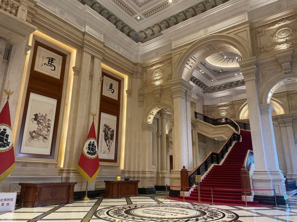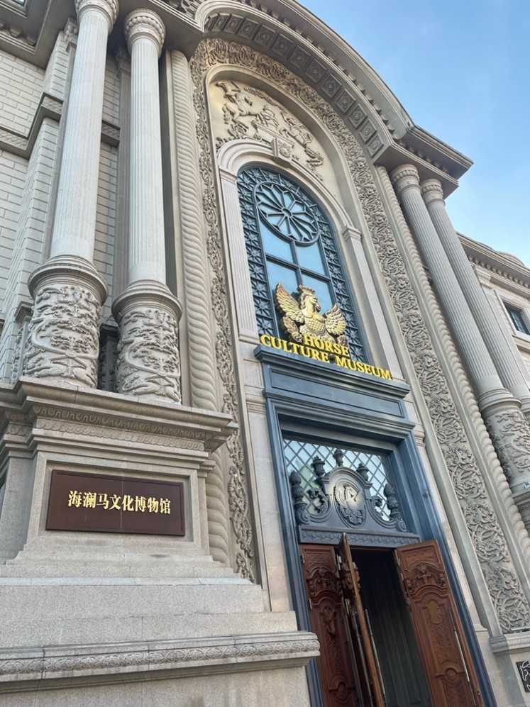 私たちは「馬文化博物館」に入場した。一階には何十頭もの馬が展示されており、アラブやモンゴル、アメリカなど世界各国の名馬が集まっていた。二階は体験フロアで、3Dメガネや映像、模型を使って馬の歴史や文化を学べる。馬の剥製展示もあり、馬術文化への深い尊重が伝わってきた。三階には海澜集团の企業史や展示資料が並び、中国企業の成長の軌跡にも触れることができた。