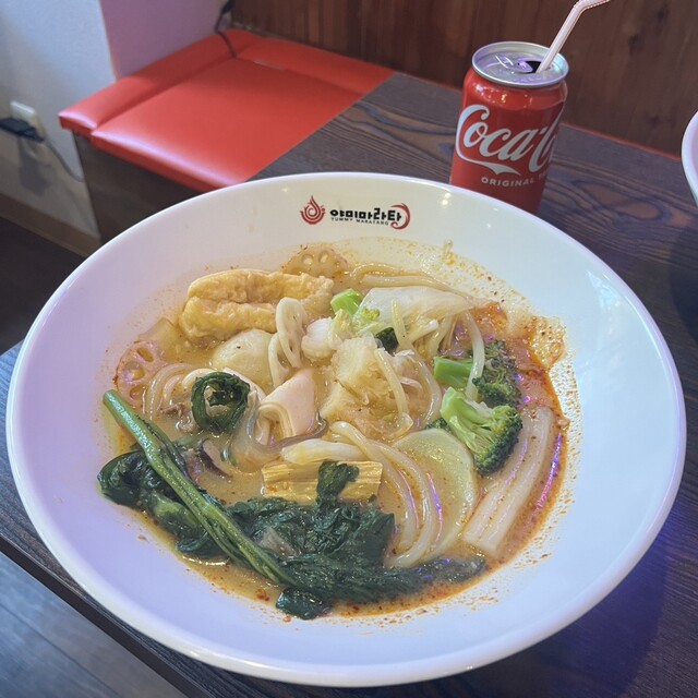 四川麻辣湯の姉妹店。あっさり味でヘルシーメニューが多く若者や女性に人気。クリームソーダを一緒に注文する人も多い。