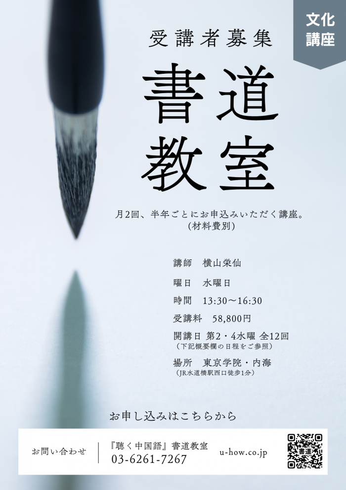 JR水道橋駅近くの教室にて、月2回(隔週水曜日13:30~16:30)「横山栄仙・書道講座」を開講しております。