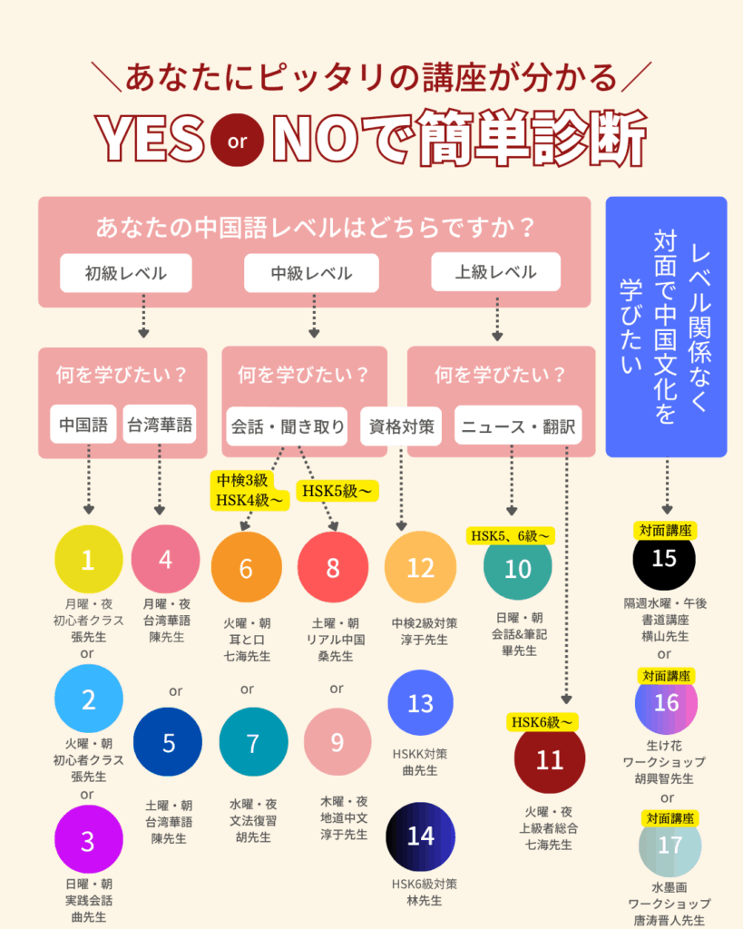 📘『聴く中国語』では、目的やレベルに合わせて選べるオンライン&対面講座を多数ご用意しています!