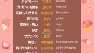 中国語の常用表現バレンタインデーに関する中国語単語 来週末はいよいよバレンタインデー。 女性の皆さんはなにか準備していますか? 日中で違うバレンタインデーの習慣。 今日は日本のバレンタインデーの単語を紹介します。 恋愛トークにも使える表現を、この機会にチェ... 2026.02.06中国語の常用表現話題別単語リスト