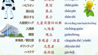 中国語の常用表現万博に関する中国語単語 開幕から早1か月となる大阪・関西万博。 みなさまはもう行かれましたか? もう行った!という方も、これから行こうかな~と考えている方も 万博に関する中国語単語を一緒に覚えてみましょう! ... 2025.05.12中国語の常用表現話題別単語リスト
