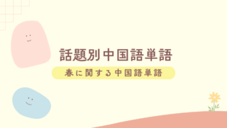 聴く中国語春に関する中国語表現 春の訪れを感じる季節になりましたね。 暖かい日差しや色とりどりの花、外に出かけたくなるような空気に、心も少し軽やかになる頃です。 今回は、そんな「春」にまつわる中国語の単語をピックアップしてご紹介します。 今回ご... 2026.04.10聴く中国語話題別単語リスト