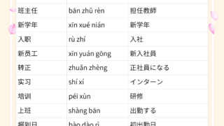 聴く中国語新年度に関する中国語表現 新年度が始まるこの季節。 新しい環境や出会いに、少しワクワクしたり、少し緊張したりしている方も多いのではないでしょうか。 進学や就職、異動など、生活が大きく変わるタイミングでもあり、日常の中で使う言葉も少しずつ変わって... 2026.04.01聴く中国語話題別単語リスト